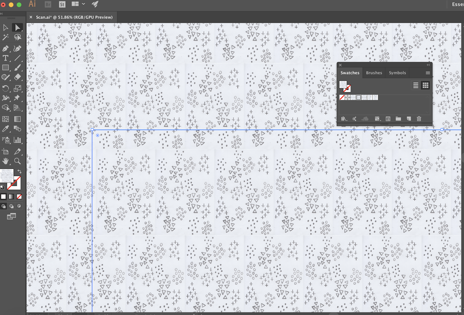 I have also tried making my design into a repeating pattern using adobe illustrator. In this program I found it a lot easier to do as you can save the design as a pattern and easily us it again whenever you want. In this program I was able to line my design up differently, so it looked more seamless. I really like how this pattern has turned out as I think it is a good example of making a repeating pattern easily.